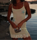 Bring sunshine to your summer days with this breezy starfish-beaded knit mini dress, designed for effortless style from beach escapes to city afternoons. The lightweight, non-stretch knit drapes softly while the beaded starfish accents add playful movement and a coastal-chic vibe.