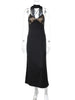 Perfect if searching “dramatic black lace halter backless dress for winter party or formal event.” The high slit and lace panels suit both classic and bold styling.