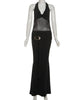 Mesh panels, sheer inserts, and halter necks sit at the forefront of global club and eveningwear trends in 2025—making this gown a must for high-impact styling and modern occasion fashion.