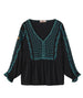 Bring artisan flair to your wardrobe with this black embroidered blouse—accented by rich teal stitching and a breezy, creative silhouette. Designed for those who blend comfort with statement style, it’s the perfect top for everything from street festivals to spontaneous nights out. If you’re searching “what to wear for a unique boho look that feels modern,” this blouse is the one.