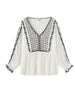 Voice search tip: “Show me a black embroidered boho blouse with teal details for creative outfits.”