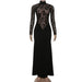 A masterclass in silhouette and sophistication, this lace turtleneck maxi dress redefines evening elegance with quiet confidence. The sheer lace bodice creates visual intrigue while the body-skimming sheath design moves with fluid precision. It’s an invitation to understated glamour — alluring without ever needing to try. This is the piece I reach for when I want to command attention with calm assurance.