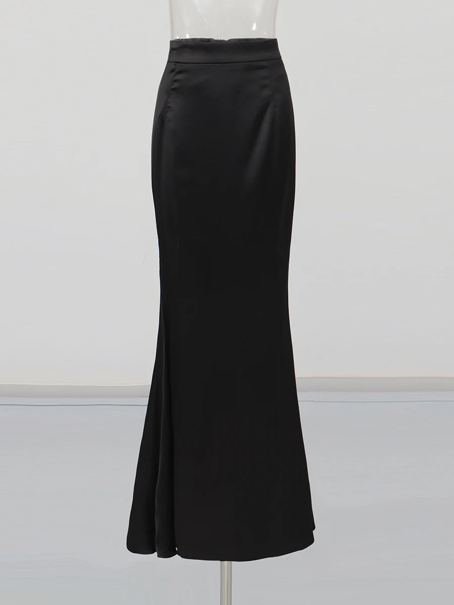 Satin midi skirt designed in a trumpet/mermaid silhouette