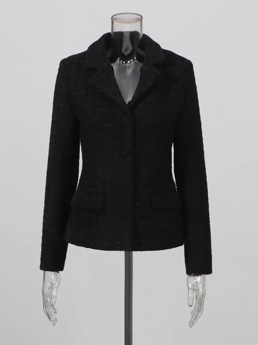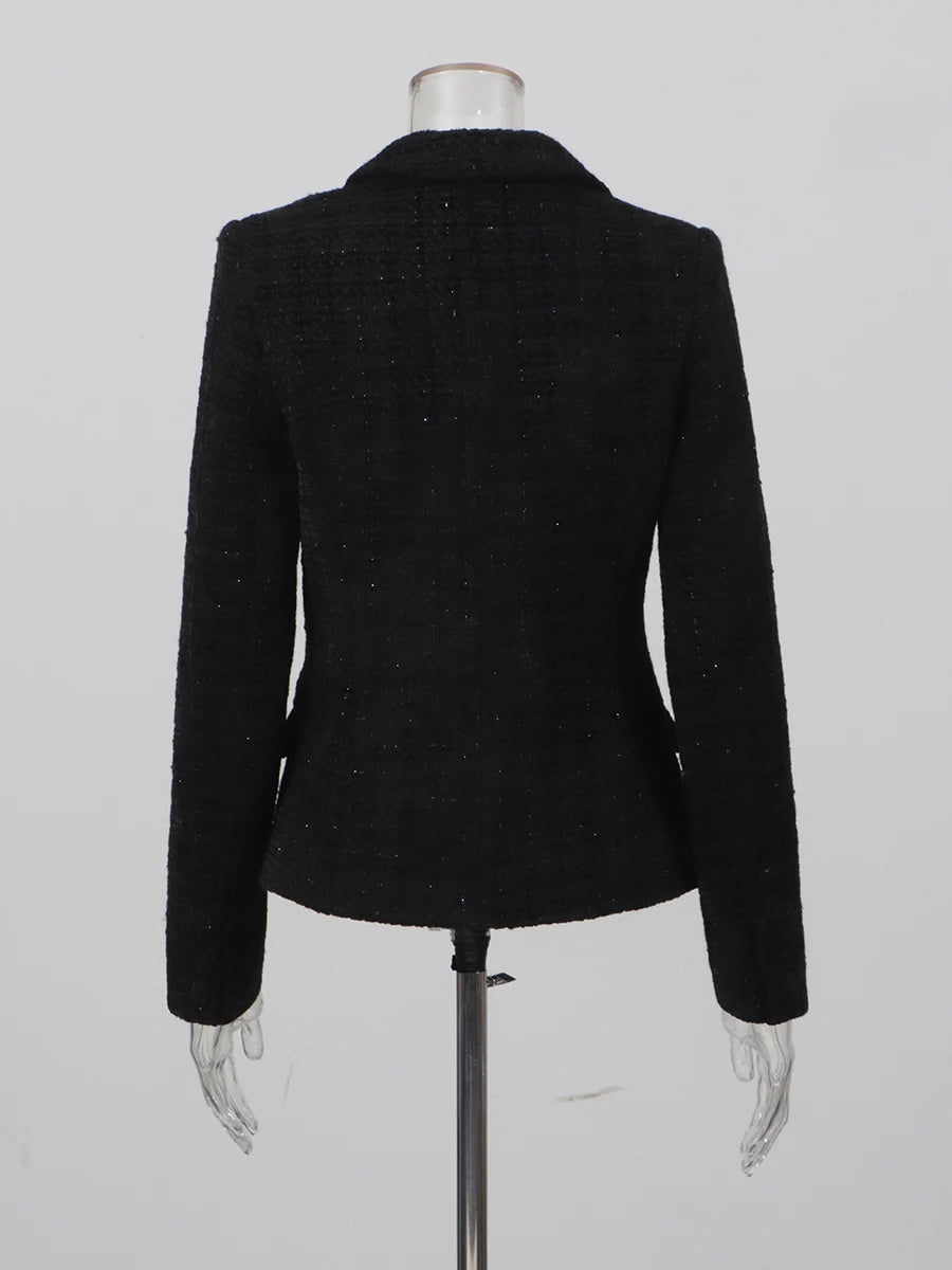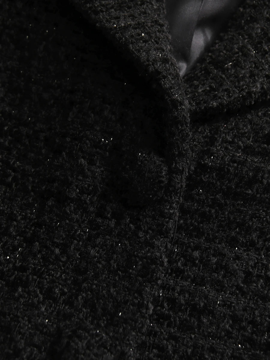 Short tailored blazer crafted from textured black tweed