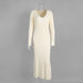 Wrap yourself in quiet luxury with this black V-neck knit maxi dress—a refined blend of comfort and elegance for autumn and winter evenings. Designed in a slim A-line silhouette with full sleeves and a chic, waist-defining belt, the woven fabric gently skims the figure while delivering warmth for cozy nights in or sophisticated city outings. Perfect if you're searching for a versatile dress that looks as good lounging as it does at dinner.