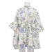 Bring fresh elegance to your autumn wardrobe with this blue floral print lace up mini dress, designed for office days, brunches, and transitional seasons. The slim-fit silhouette, flowing A-line skirt, and stand collar create a graceful and versatile look that moves easily from work to weekend.