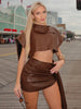 Turn heads at every party with this rich brown mini dress set, crafted as a sleek two-piece for endless styling flexibility. The set features a structured turn-down collar crop top with artful ruching and a high-waisted, above-the-knee skirt that flatters and elongates. The smooth blended fabric and slim line silhouette are perfect if you're searching for a standout look that's bold, confident, and perfectly fitted for autumn/winter nights out.