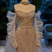 Pair this striking dress with delicate crystal or vintage gold earrings and neutral stilettos for maximum impact. The champagne tones and tulle sleeves channel modern fairytale glamour—perfect for weddings, gala banquets, or Instagrammable special occasions looking for a head-turning gown.