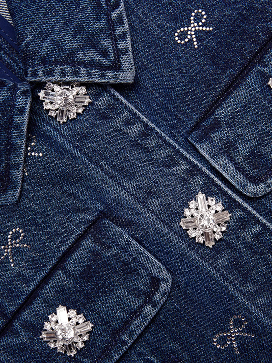 A structured denim-inspired mini dress designed for days when you want effortless charm with a tailored edge. The turn-down collar and bowknot detailing add a hint of playful sophistication, while the clean A-line silhouette gives the look a confident, sculpted finish — almost like casualwear refined into a polished statement. This is the piece I reach for when I want something relaxed yet elevated, perfect if you’re looking for a denim mini dress with pockets that still feels chic and modern.