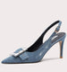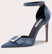 Step out in style with these edgy and elegant denim pumps, a perfect choice for your next party or special event. The super-high, thin heel and classic pointed toe create a sleek and confident feel, while the sparkling crystal accents and unique denim material add a touch of modern flair. This is the perfect shoe if you're looking for a bold, statement-making piece that combines a casual vibe with a sleek, formal look.