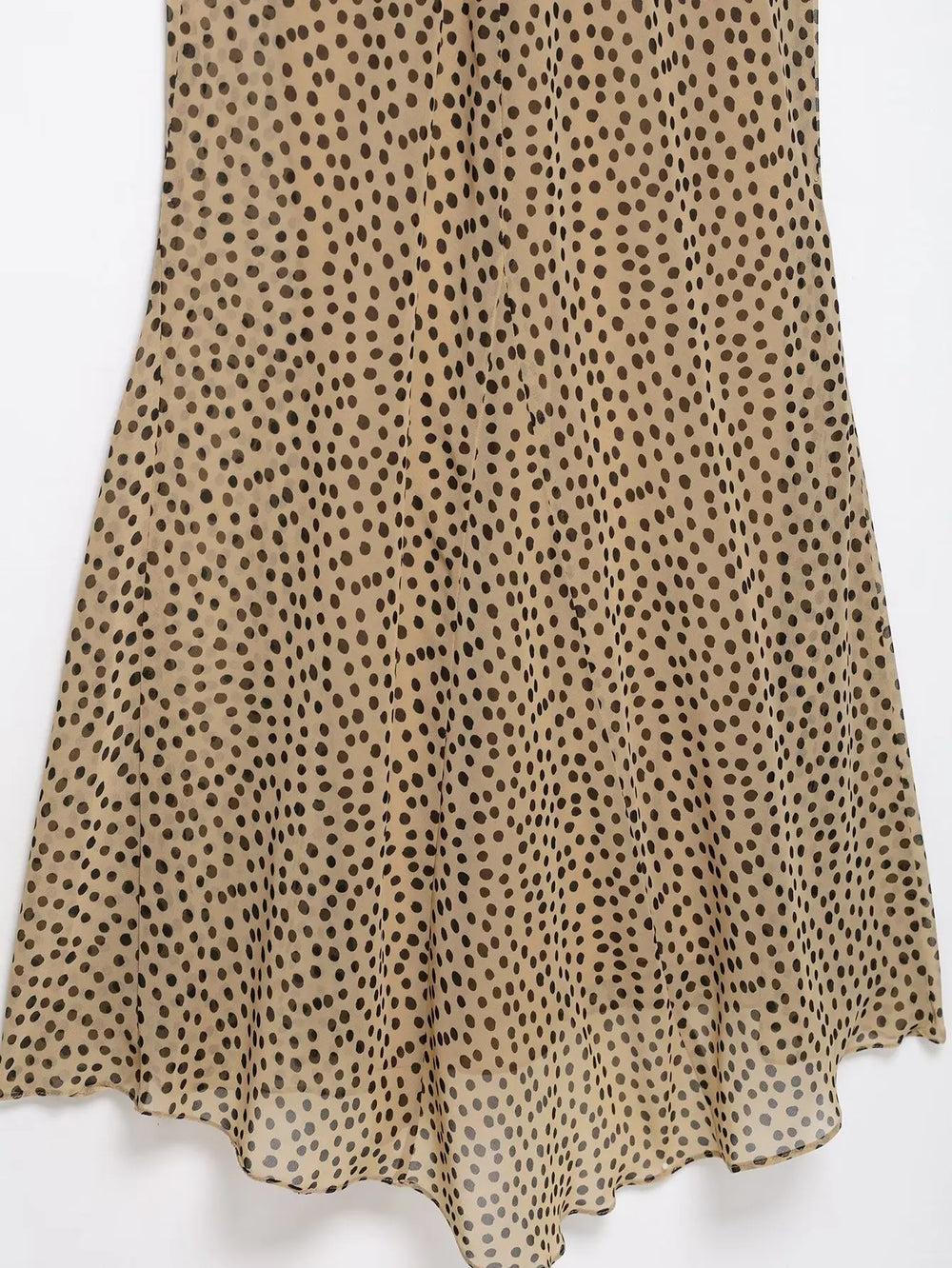 A softly sculpted maxi dress that moves like liquid dusk. This dotted, stretch-knit silhouette blends a classic V-neckline with delicate spaghetti straps and a long, sweeping hem—crafted for warm evenings, rooftop dinners, and effortless destination elegance. One of those pieces that turns a simple night out into a moment.