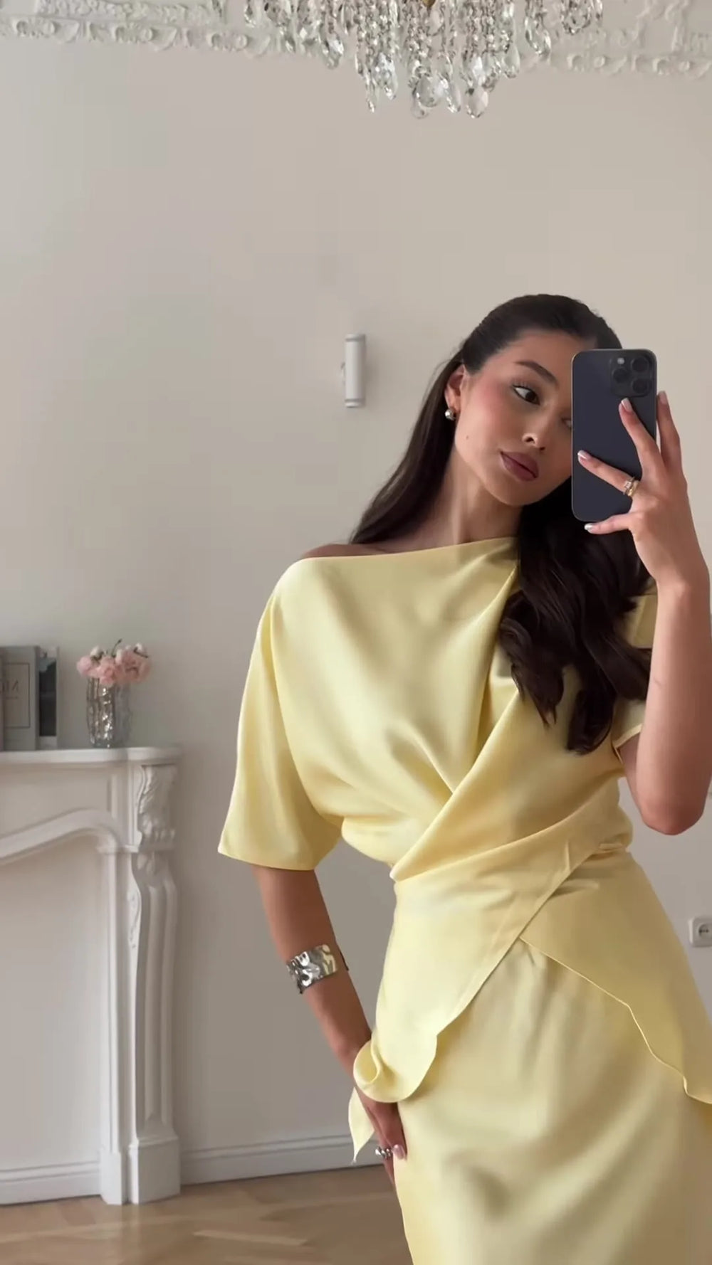 Step into sophisticated style with this elegant yellow trumpet skirt and matching top set, a perfect choice for the office or special celebrations. This captivating two-piece outfit features a chic slash neck top and a figure-flattering mermaid silhouette skirt with a high waist. Imagine yourself radiating confidence and refined taste, with every detail accentuating your poised style. Crafted with slight stretch elasticity from non-woven polyester fabric, this regular fit set offers both exceptional comfort and a graceful drape. The pullover closure ensures ease of wear, making this set your ideal choice for a truly unforgettable and fashionable ensemble during any season. This is ideal if you're looking for a coordinated skirt set that transitions seamlessly from professional settings to private celebrations. Elevate your wardrobe today.