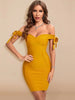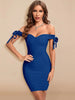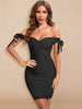 Turn every entrance into a moment with the Emerald Off Shoulder Bandage Mini Dress—designed to accentuate curves and elevate every celebration. With its contoured bodycon silhouette, ribbon-tie off-shoulder sleeves, and luxe mini length, this dress brings fresh glamour to parties, cocktail nights, and wedding season style.
