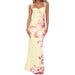Embrace a romantic and effortless summer style with this floral backless cami dress. The slim sheath silhouette and lightweight fabric create a comfortable and flattering fit, while the vibrant floral print makes a bold statement. The delicate spaghetti straps and alluring open back with a tie-back detail add a touch of modern romance, making this a dress that easily transitions from a day at the beach to a summer party or a special event.