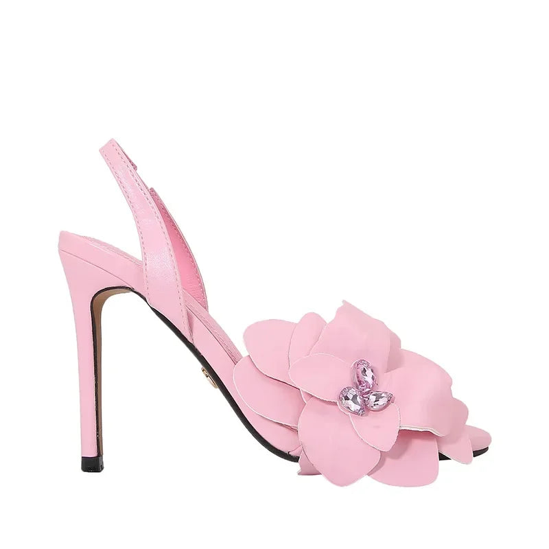 Ideal for pairing with evening gowns, cocktail party dresses, or wedding attire. Crystal floral sandals are trending for “statement designer heels summer 2025” on Pinterest and high-fashion boards.