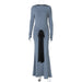 Elegant grey maxi dress for autumn occasions and statement day-to-night looks