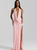 A modern ode to timeless sensuality — this halter maxi dress flows with sculptural grace. The deep V neckline, fluid draping, and open-back design create a silhouette that moves like light, soft yet striking. It’s that effortless statement piece that speaks without ever trying.
