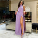 Step into sunset chic with this lilac halter maxi dress, designed for effortless glamour on every summer holiday, evening event, or rooftop gathering. Its elegant pleating, open back, and thigh-high side slit blend classic resort style with a modern silhouette, offering just the right mix of sophistication and allure.