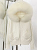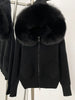A study in contrast and comfort, the Knit Zip Hoodie with Faux Fur Collar pairs a sculpted knit body with a voluminous hood trimmed in faux fur. Designed for effortless layering, it merges the warmth of a sweater with the statement of outerwear.