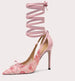 Step into romance with lace mesh rose bow lace-up pumps made for unforgettable evenings.