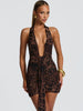 Turn heads and empower your night with this fiercely confident leopard print mini dress. The draped plunge neckline and ruched silhouette are designed for women who want to make an entrance, whether you're searching for a bold party look or a trendy outfit for a night out with friends.