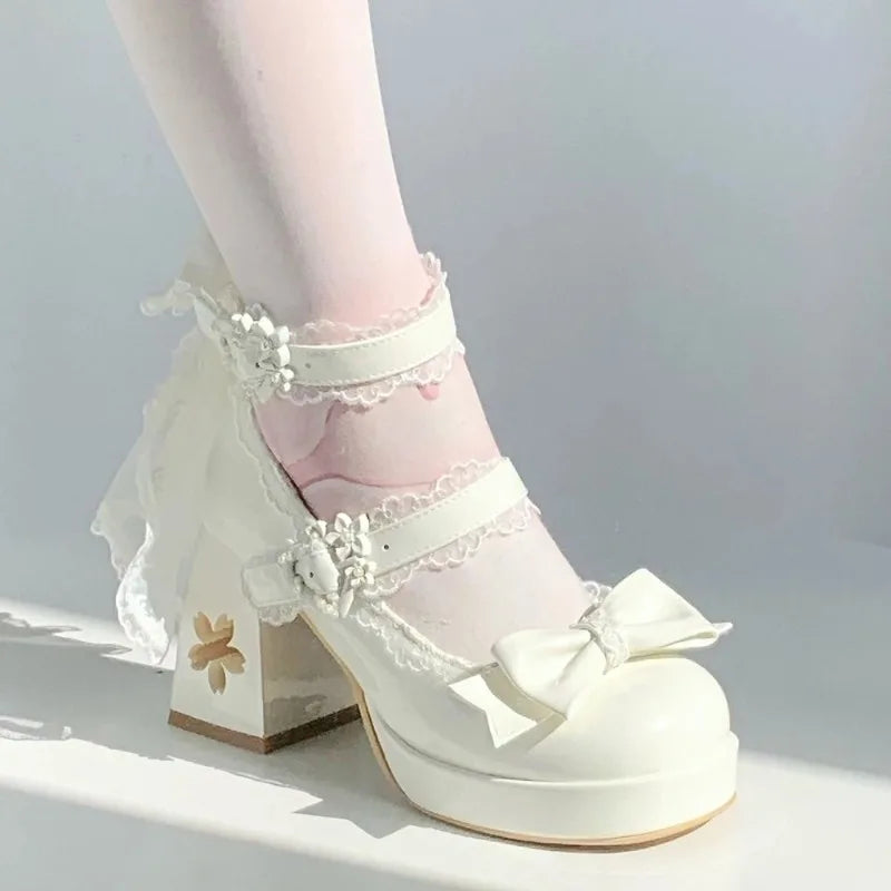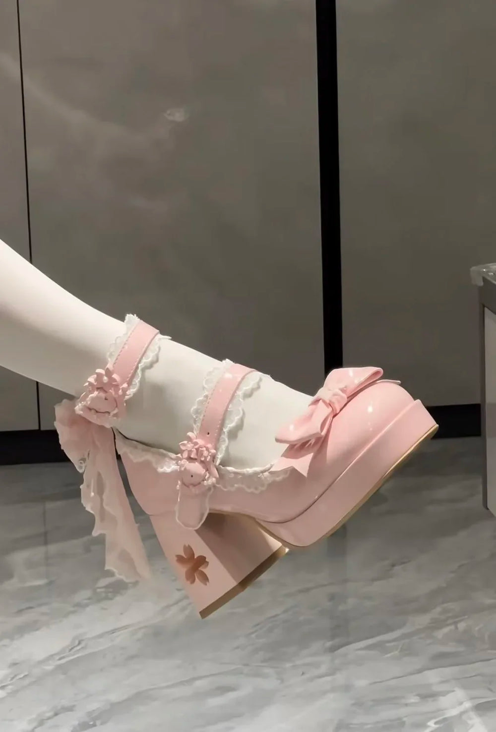 This is perfect for anyone searching for cute pink platform Mary Janes with a bow for spring events. From sakura-viewing festivals to pastel-themed parties, these heels were made to capture moments with dreamy flair
