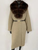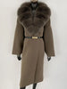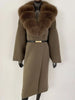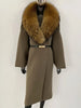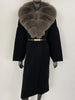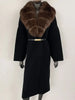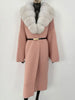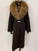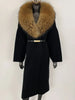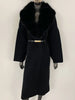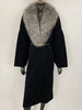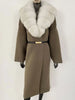 The Long Knit Coat with Oversized Faux Fur Collar redefines cold-weather glamour through dramatic proportion and sculpted restraint. Crafted in a fluid knit viscose blend, it drapes with effortless precision while a voluminous faux-fur collar frames the face like a classic film still. The tonal belt cinches the silhouette for structure, transforming softness into power.