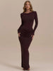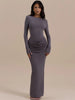 Slip into modern elegance with this long ruched grey gown, designed for standout occasions and all-season polished style. Featuring a floor-length slim silhouette and artful gathered draping at the waist, this dress brings together sophistication and comfort. Perfect if you're searching for a dark neutral dress that combines dramatic length with understated detail.