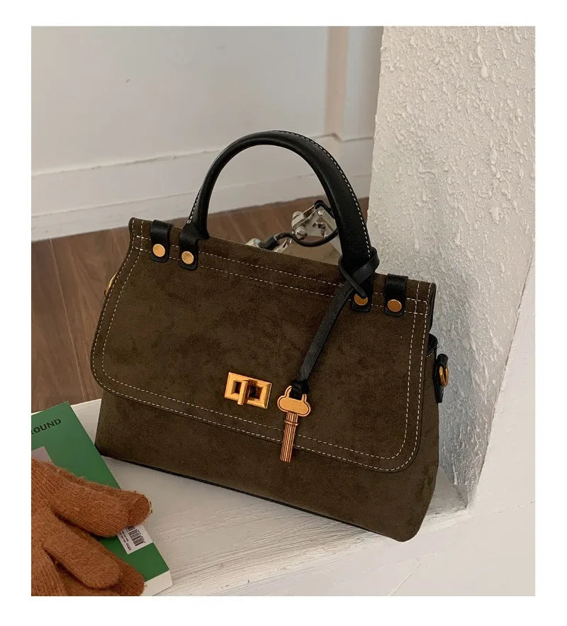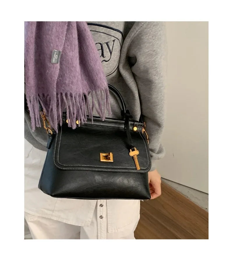 • Pair with neutral layers (beige, taupe, cream) or contrast with lighter tones to let the bag pop