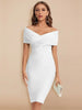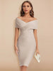 This mint off shoulder bandage dress makes every entrance a moment, featuring a flattering Bardot neckline, sculpted V bodice, and curve-accentuating bandage knit. Soft pastel hues keep it fresh for weddings, cocktails, or summer events—while medium-stretch fabric perfectly hugs your figure. It’s the must-have fit for anyone searching “mint green off shoulder cocktail dress for special occasions.”