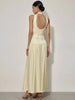 Elevate your wardrobe with this sleeveless maxi dress, designed with a sleek high round neckline and a striking open-back finish. The fluid silhouette moves gracefully, making it a versatile choice for both day and evening occasions.