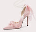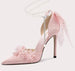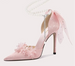 Pink pearl flower ribbon bow sandals with stiletto heel