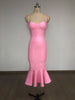 Step into any celebration with feminine confidence in this pink bandage ruffle midi dress, designed to sculpt and flatter the figure for every event. With its sweetheart neckline, slim spaghetti straps, and dramatic ruffled hem, this curve-hugging midi is a must-have for dinners, date nights, or chic summer parties. Searching for a pink midi gown that’s trending on Pinterest and made for both effortless style and an hourglass shape? This dress is built to impress.