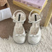 A: Yes, the cushioned PU insole and block heel design provide comfort and stability for extended use.