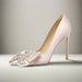 Add sparkle to every step with these pink silk pointed stiletto pumps, hand-adorned with a dazzling rhinestone butterfly bow for an unforgettable spring look. Designed for parties, banquets, and bridal occasions, these slim heels combine elegance and modern flair with all-size comfort.