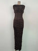 A sculptural evening dress built around movement and presence. The cape-inspired pleated overlay wraps the shoulders with fluid softness, while the slim sheath silhouette elongates the body in one continuous line. The folds create a rippled effect—like fabric shaped by a slow tide—giving the dress a distinctive, artistic profile. This is the piece I reach for when I want elegance that feels architectural but still effortless.