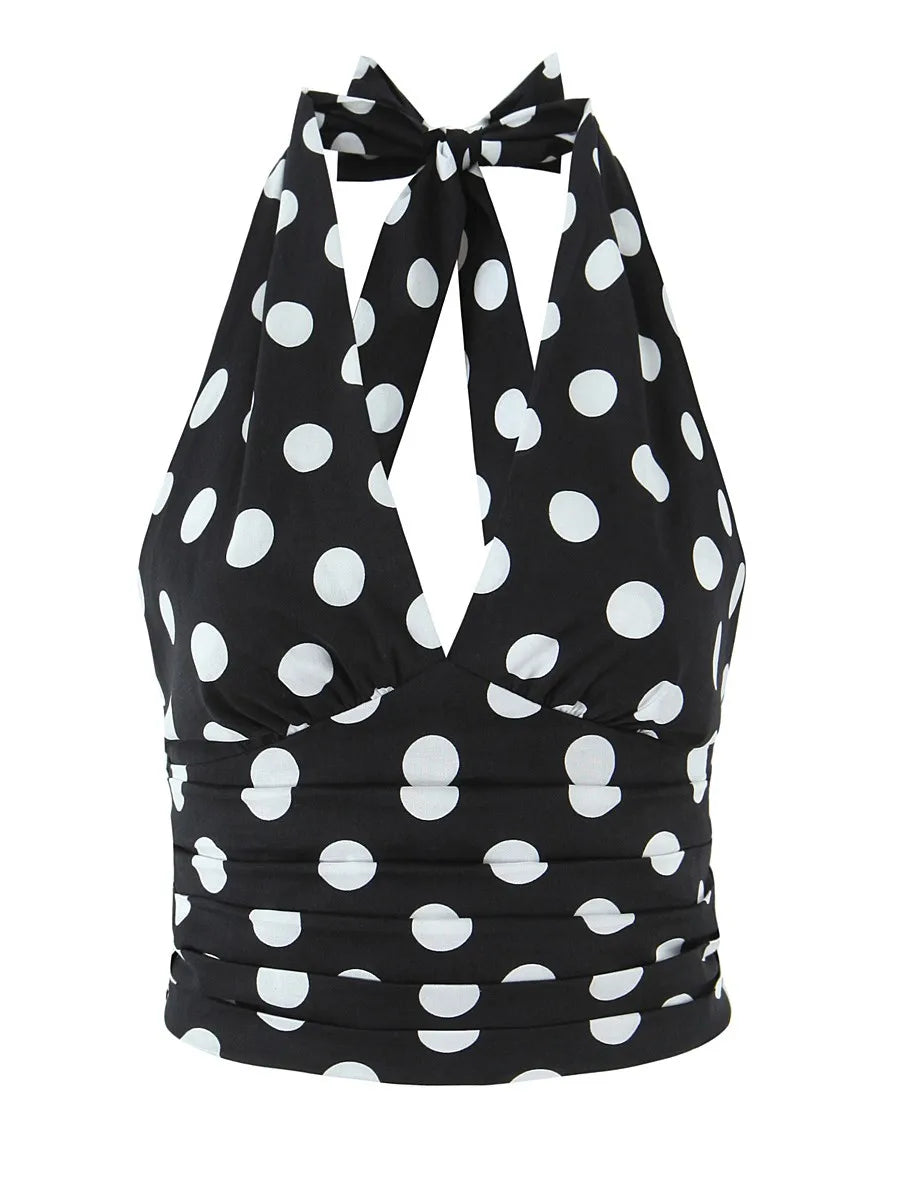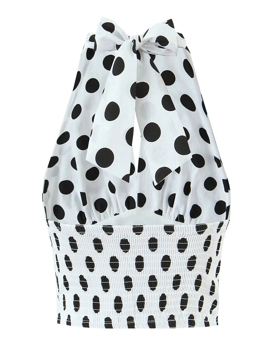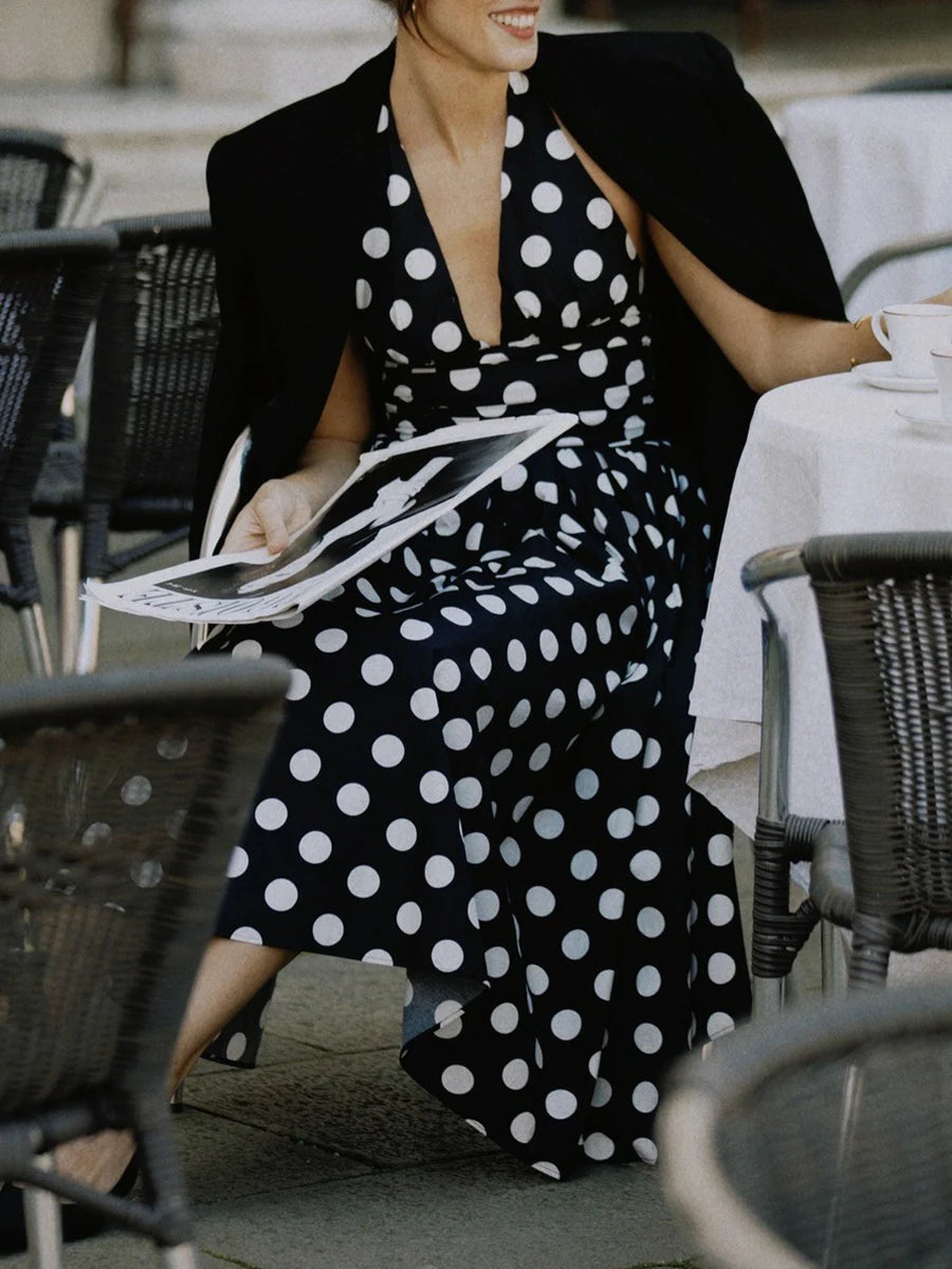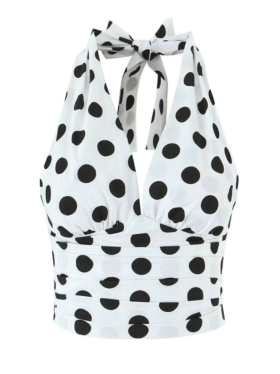 A playful yet polished two-piece set that brings vintage polka dots into a modern summer silhouette. The halter crop top features a clean V-front shape, while the high-waist A-line skirt adds movement and ease — the perfect warm-weather pairing. If you’ve ever wondered what co-ord looks effortlessly chic for a beach brunch or holiday getaway? — this one delivers instantly.