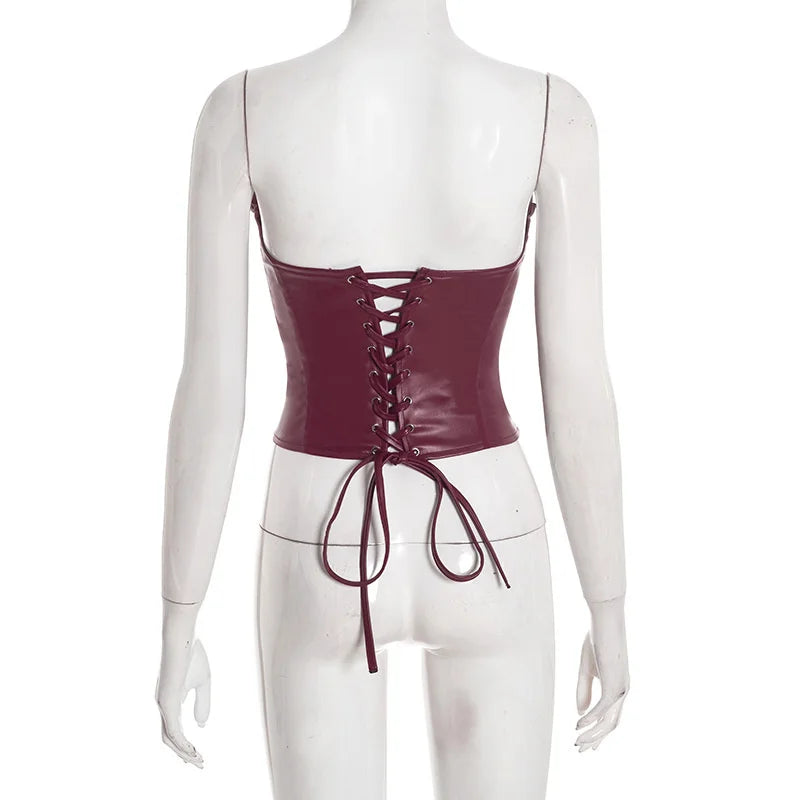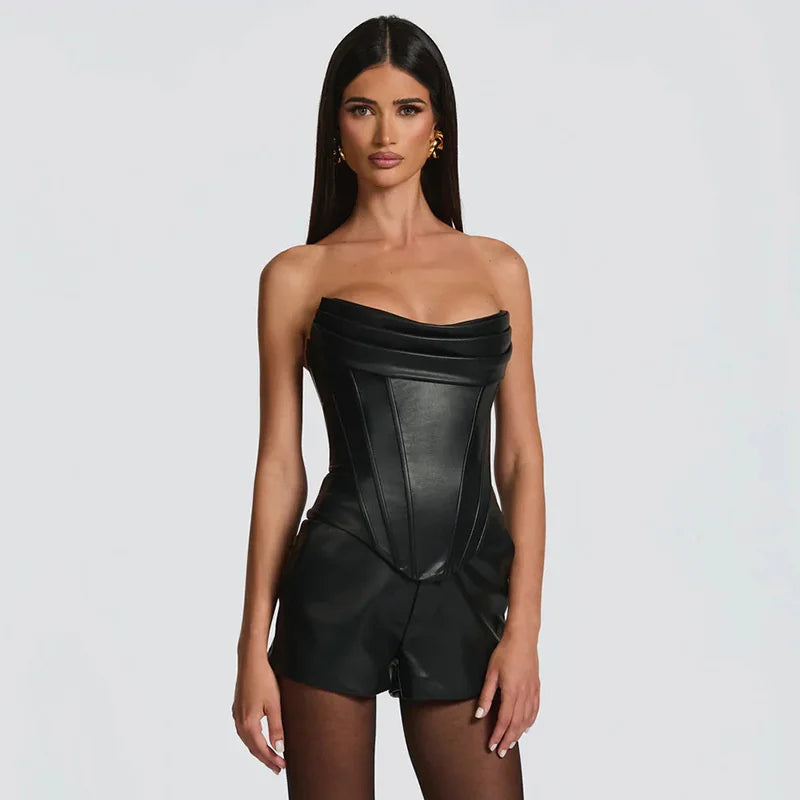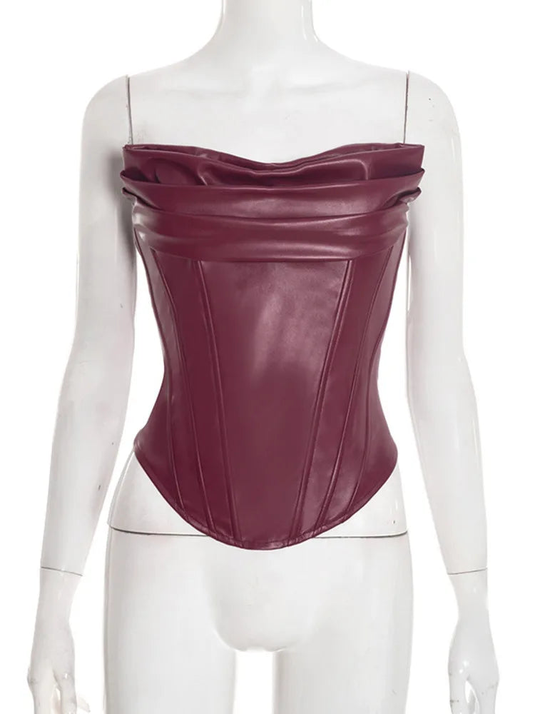 A sleek, sculpted corset top designed to bring modern edge with refined structure. The PU leather finish adds quiet confidence, while the strapless neckline and paneled shaping create a lifted, contoured silhouette that feels intentionally crafted. It has the kind of fluid rigidity—like a molded form softened by warmth—that makes every outfit look sharper and more deliberate. This is the piece I reach for when I want a top that transforms even the simplest bottoms into a statement.