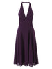 Stand out in effortless elegance with this purple halter neck midi dress—a timeless silhouette tailored in soft woven fabric with a graceful A-line skirt. The open back and mid-calf length bring movement and fresh summer energy, while the empire waistline flatters every figure. If you're searching for an occasion dress that's both versatile and show-stopping, this is your go-to for normcore, minimalist, and event-forward styling.