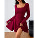 Red Square Neck Mini Dress | Elegant Above-Knee Fit for Events