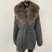 The Ribbed Knit Belted Coat with Ivory Faux Fur Collar is the modern definition of restrained glamour. Its sculpted ribbed knit wraps softly around the frame, while a wide faux-fur collar in pale ivory adds architectural contrast. Designed to feel both substantial and fluid, it speaks to the kind of effortless winter dressing where texture replaces logos.