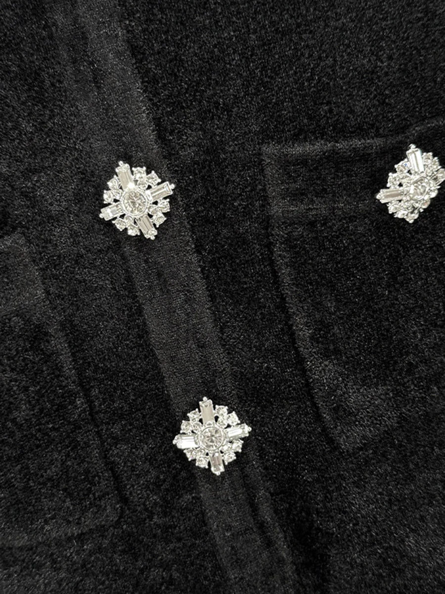 Faceted diamond-style buttons adding subtle sparkle
