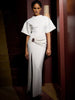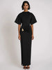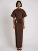 Elevate your evening style with this artfully ruched maxi dress that blends structure with softness. Designed with a flattering side slit and metallic detail at the waist, it offers a confident, sculpted silhouette with minimalist elegance. This dress is perfect for modern occasions that call for quiet drama — from elevated dinner parties to holiday soirées.