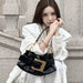 A soft, sculpted statement piece for the modern wardrobe. This ruched microfiber synthetic leather baguette bag blends effortless femininity with structured elegance. The signature gold buckle detail adds a touch of glamour, while its compact, soft-body silhouette fits all the essentials for both day and night. Available in three timeless colors — black, ivory, and blush pink — this piece complements any outfit, from casual brunch to evening events.