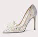 Shimmer with grace in these Sequin Lace Crystal Pointed Toe Wedding Pumps. Designed to dazzle, the delicate mesh and crystal accents bring luminous sparkle to every step—perfect for weddings, banquets, and formal evenings.