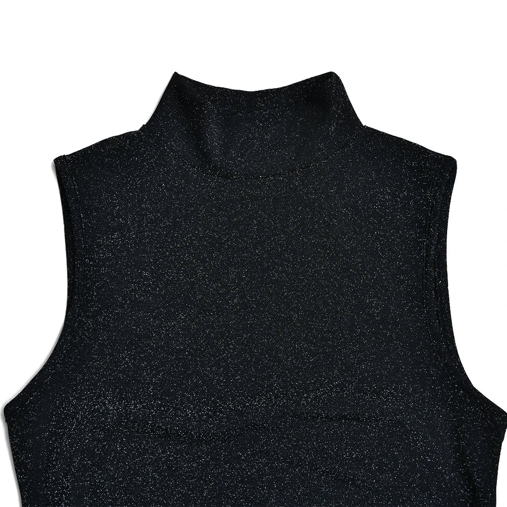 High neckline with clean sleeveless design