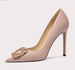Elevate your spring wardrobe with these silk-surface pointed toe heels, finished with a shimmering diamond buckle. Crafted for banquets, parties, and elegant evenings, they blend luxury detail with timeless sophistication.