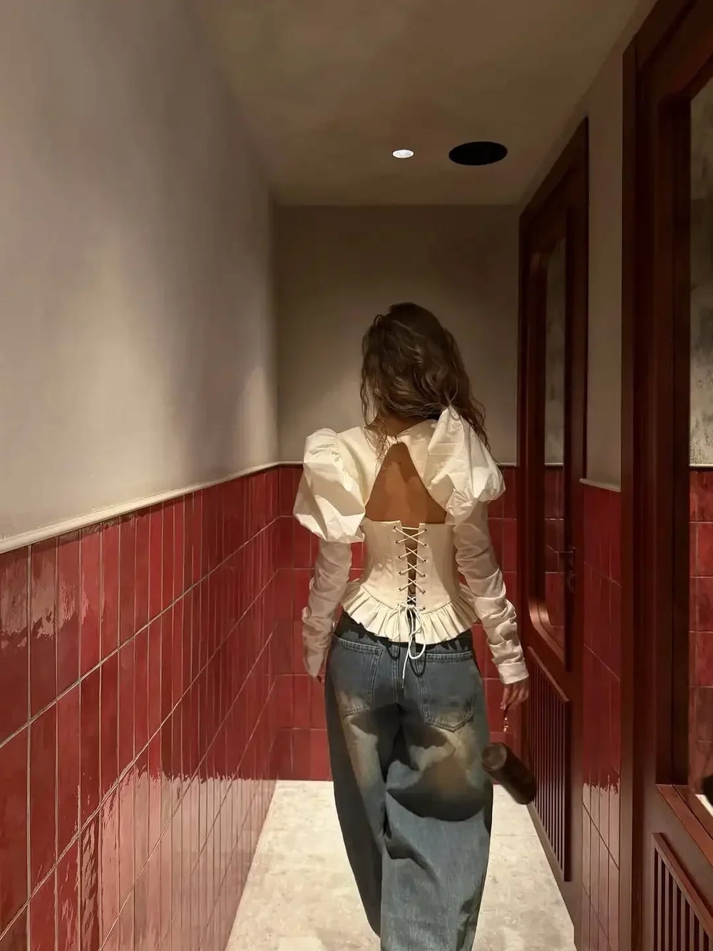 It gives instant “styled” energy: corset structure for shape, puff sleeves for drama, and a neckline that photographs beautifully.