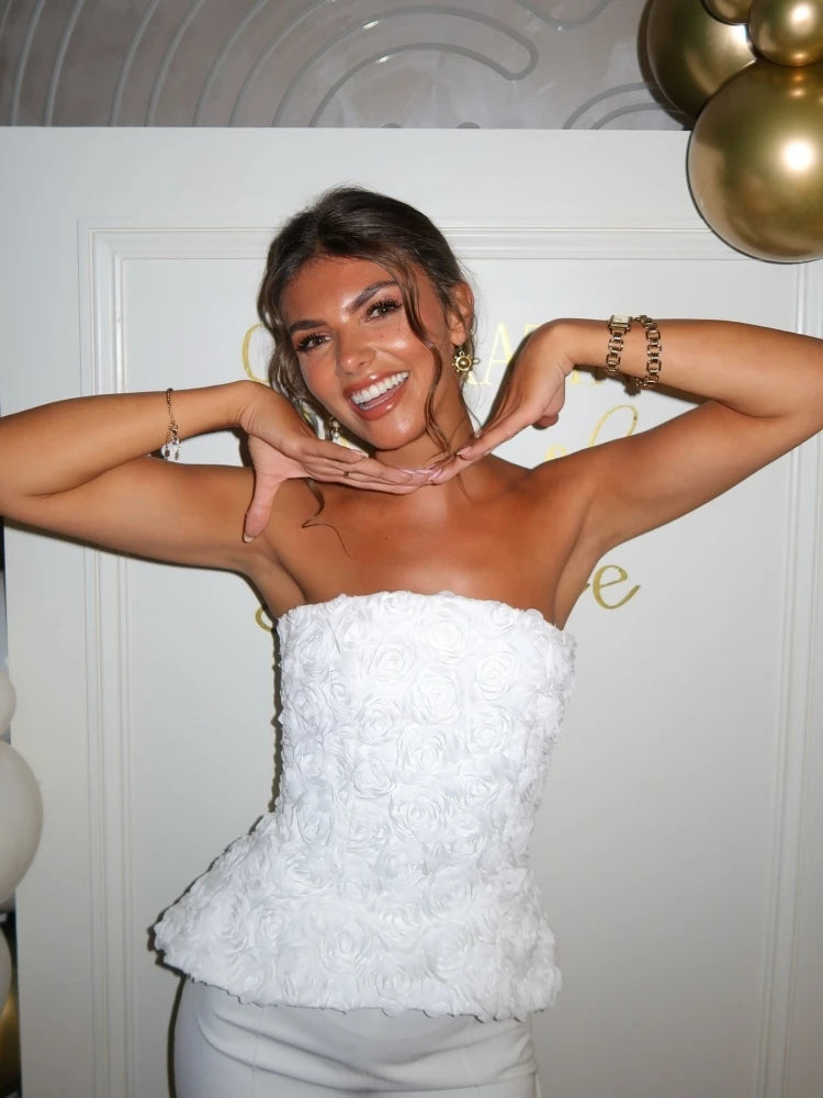 • Slim-fit strapless top with tactile 3D floral texture for sculpted elegance