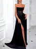 A sculptural, evening-ready maxi dress crafted with structured boning and sheer patchwork that creates a dramatic, elongated silhouette. The strapless neckline frames the shoulders with clean precision, while the high slit adds movement that feels like a curtain lifting with a slow, elegant sweep. Designed for nights where confidence is the dress code, this piece brings modern glamour with minimalist restraint. This is the piece I reach for when I want a look that feels bold yet effortlessly refined.